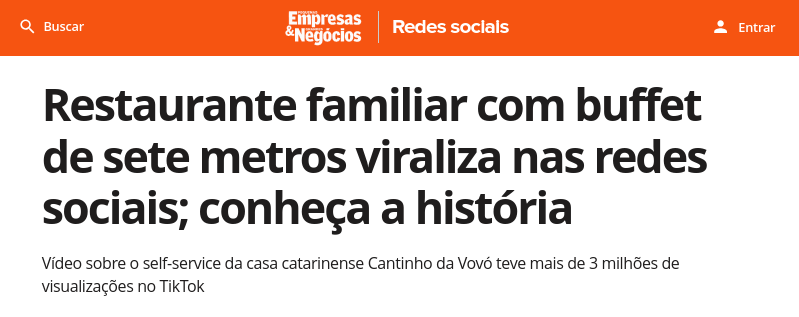 caso você nunca tenha ouvido falar do Cantinho da Vovó, você certamente já ouviu falar do Cantinho da Vovó. mesmo sendo apenas uma usuária casual de TikTok, a sensação é que este existente restaurante no coração do bairro Pinheirinho viraliza nas redes sociais todo mês. talvez meu algoritmo do Twitter esteja calibrado para receber exatamente este tipo de conteúdo, mas é como se o universo não conseguisse ficar cinco minutos sem lembrar que o Cantinho da Vovó existe e é um lugar onde você, cidadão do mundo e pessoa do planeta Terra, poderá um dia almoçar. e eu entendo: é só assistir um vídeo do Cantinho da Vovó que o seu cérebro é irreversivelmente alterado.