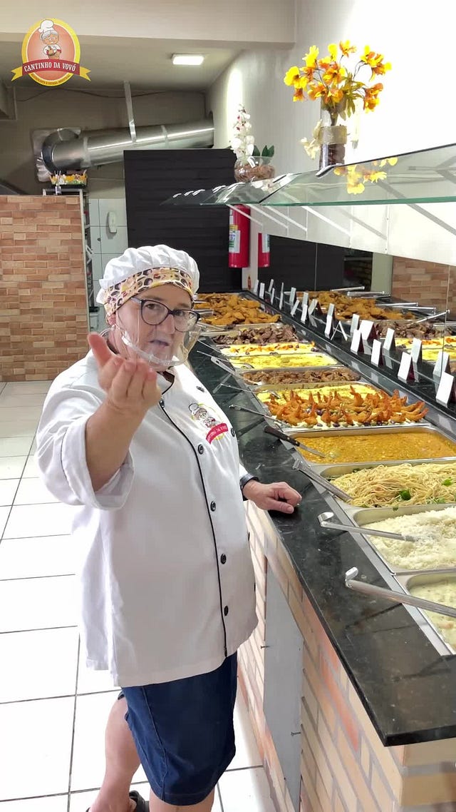 todos os conteúdos do Cantinho da Vovó seguem uma mesma fórmula; a própria Vovó, possuidora do Cantinho, fazendo um breve tour do buffet do dia, sempre cheia de carisma e o x factor necessário para fazer sucesso em uma rede social de vídeos curtos. com uma agilidade impressionante para uma idosa, a Vovó, entidade em letra maiúscula, passa por todos os itens do cardápio, sempre frisando para o espectador que tal prato é uma delícia. e quais pratos são esses? todos que existem. não é necessariamente que o Cantinho da Vovó seja especializado em frutos do mar; ele é especializado, especificamente, em camarão. todo tipo de comida que tenha alguma relação com camarão é servida; bobó de camarão, camarão na moranga, camarão empanado, camarão no alho e óleo, risoto de — exatamente — camarão. no Cantinho da Vovó, há um prato chamado camarão internacional. você está me perguntando o que é um camarão internacional, e eu te devolvo uma outra pergunta: você precisa saber?